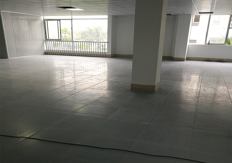 廣州增城區(qū)某電子廠PVC防靜電地板工程,采用600x600x2.0mm規(guī)格的淺灰色pvc防靜電地板,防靜電值指數(shù)10的4-6次方,通過使用方的嚴格測試,防靜電值、耐磨度、防火性能等各項指標均符合使用方的要求,工程總面積2600平米,整個工期為4天。