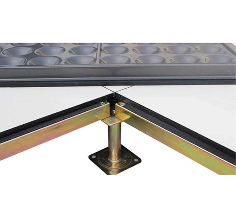 陶瓷防靜電地板是采用優(yōu)質(zhì)合金冷軋鋼板,經(jīng)拉伸后點(diǎn)焊成形,表面進(jìn)行靜電噴塑防銹處理,內(nèi)腔填充優(yōu)質(zhì)發(fā)泡水泥,面層采用陶瓷地板作為裝飾貼面;陶瓷防靜電地板系統(tǒng)組裝由地板、橫梁、支座組成,橫梁和自身高度可調(diào)的支座用螺絲連結(jié)成穩(wěn)固的下部支承系統(tǒng),地板鑲嵌入橫梁圍成的方格內(nèi)。